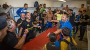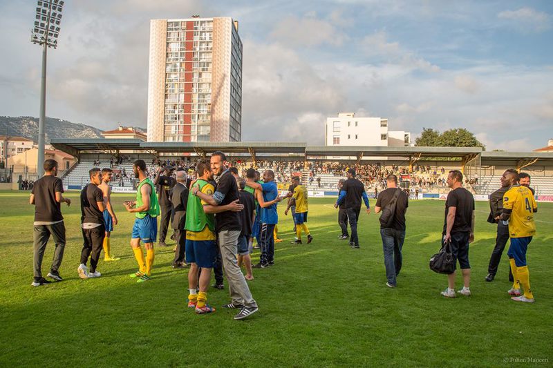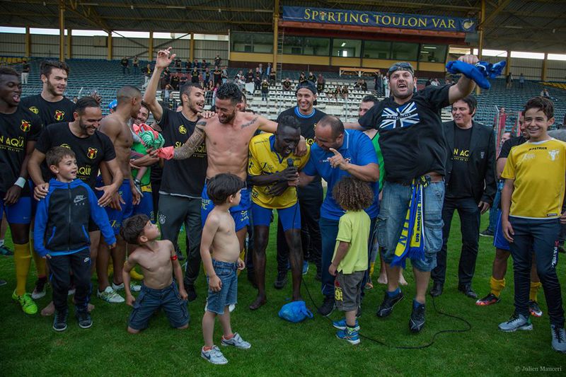 radieux. Au final, terrain envahit, communion avec les supporters et sourire sur tous les visages. Comme il y a 2 ans… Et soirée au Satyn’s au Mourillon pour célébrer tout ça. Merci à
